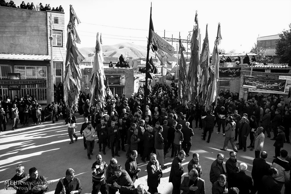 في هذا الطقس، يجتمع أهالي القرى الثلاث في اليوم التاسع من محرم (تاسوعا) ويحملون أعلامًا تكريمًا لشهداء كربلاء. من بين هذه الأعلام السبعة، يعتبر العلم المخصص للعباس بن علي، الأخ وحامل علم الإمام الحسين، الأهم ويبلغ ارتفاعه أكثر من خمسة أمتار.