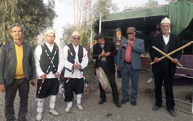 چوب‌بازی همراه با موسیقی محلی اجرا می‌شود