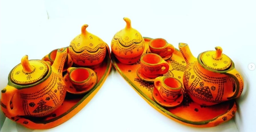 مجموعه فنجان و قوری سفالی، محصول کارگاهی در کلپورگان