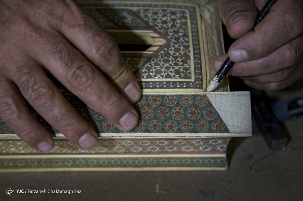 يمكن تصنيف الحرف اليدوية بحسب المواد الخام المستخدمة في تنفيذ التصاميم والرسوم، ومن هذا المنطلق يُعدّ فن الخاتم أحد أهم الحرف اليدوية الإيرانية، والذي يُطبَّق على الخشب والمعدن لإنتاج قطع فنية جذابة وراقية. يقوم الحرفيون في فن الخاتم بترتيب مثلثات صغيرة أو أشكال متعددة الأضلاع بشكل منتظم لتشكيل نقوش جميلة، وقد تُصنع هذه القطع الصغيرة، إلى جانب الخشب، من المعادن أو مواد أخرى مثل العظم. وتعتمد دقة الفن وروعته على حجم هذه الأشكال الهندسية، فكلما كانت أصغر، زاد جهد الصانع وقيمة القطعة.
