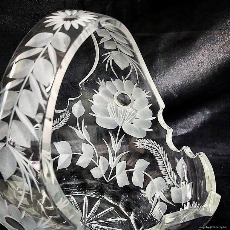 بعد إتقان الحرفيون مهارات النقش على الزجاج، وسّعوا فنهم ليشمل المرايا والكريستال. ويُطبق هذا الفن على أي مادة زجاجية أو شبه زجاجية، مما يجعل الأوعية والمرايا والكريستالات تحفًا فنية رائعة تزدان بالنقوش الدقيقة.